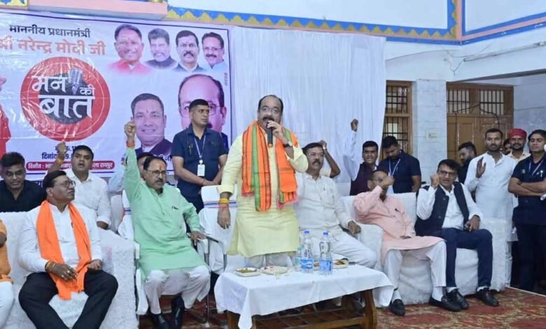 उप मुख्यमंत्री अरुण साव ने आज रायपुर के भनपुरी स्थित पाटीदार समाज भवन में स्थानीय लोगों और युवाओं के साथ प्रधानमंत्री श्री नरेन्द्र मोदी के मासिक रेडियो कार्यक्रम ‘मन की बात’ की 123वीं कड़ी का प्रसारण सुना। प्रधानमंत्री ने आज की 'मन की बात' में देशवासियों से अंतरराष्ट्रीय योग दिवस की सफलता, देश-विदेश में बने कीर्तिमानों, आपातकाल के दौरान लोकतंत्र की हत्या के काले अध्याय जैसे विषयों पर अपने विचार साझा किए। विधायक श्री मोतीलाल साहू ने भी पाटीदार समाज भवन में 'मन की बात' का प्रसारण सुना।