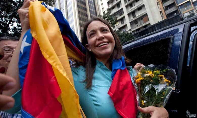 2010 में लोकसभा के लिए चुनी गईं मारिया ने रिकॉर्ड वोटों से जीत हासिल की, लेकिन 2014 में शावेज के उत्तराधिकारी निकोलास मादुरो के शासन ने उन्हें पद से हटा दिया। फिर भी, वे रुकीं नहीं। उन्होंने वेंते वेनेज़ुएला पार्टी की स्थापना की, 2017 में सोय वेनेज़ुएला गठबंधन बनाया। यह एक ऐसा धागा था जो विपक्षी दलों को एक सूत्र में बांधता था। इसके बाद का सफर और कठिन हो गया- उन्हें राजनीतिक प्रतिबंध लगाए गए, यात्रा पर रोक लगा दी गई और बार-बार गिरफ्तारी की धमकियां मिलीं। नोबेल कमिटी ने कहा, "मारिया ने दिखाया कि लोकतंत्र के औजार ही शांति के औजार हैं।" बीबीसी की '100 वुमन' सूची (2018) और टाइम मैगजीन की 'वर्ल्ड्स मोस्ट इन्फ्लुएंशियल पीपल' (2025) में शामिल होना उनके वैश्विक प्रभाव को दर्शाता है।