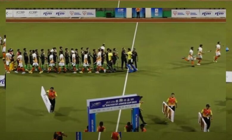 मलेशिया के जोहर बाहरु में आयोजित सुल्तान जोहर कप में भारतीय जूनियर हॉकी टीम और पाकिस्तान के बीच मंगलवार को एक मुकाबला खेला गया. लेकिन इस मैच की शुरुआत से पहले दोनों टीमों के खिलाड़ियों ने एक-दूसरे से हाथ मिलाया. जिसकी चर्चा अब सोशल मीडिया पर हो रही है. ये चर्चा इसलिए लाजमी है क्योंकि पहलगाम हमले के बाद बढ़े तनाव के बाद दोनों देशों ने खेल के मैदान पर भी एक-दूसरे से दूरी बनाकर रखी थी. एशिया कप में भारतीय क्रिकेट टीम ने पाक खिलाड़ियों से हाथ नहीं मिलाया था. ये परंपरा महिला वनडे वर्ल्ड कप मैच में भी जारी रही थी.