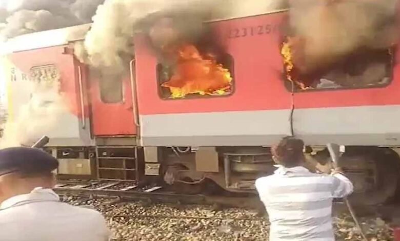 गरीब रथ में लगी भीषण आग, कई यात्रियों ने जान बचाने के लिए ट्रेन से छलांग लगाई