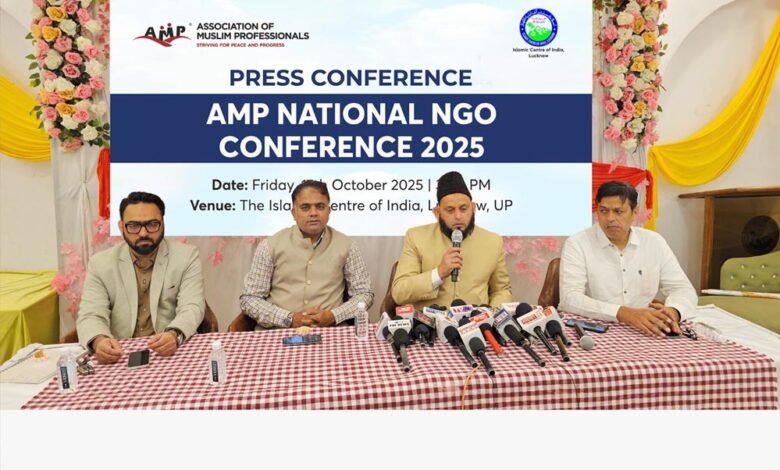 आज इस्लामिक सेंटर ऑफ इंडिया, लखनऊ में एक प्रेस कॉन्फ़्रेंस आयोजित की गई, जिसमें आने वाले AMP National NGO Conference 2025 की घोषणा की गई। यह कॉन्फ़्रेंस 15 और 16 नवंबर 2025 को इसी स्थान पर आयोजित होगी। यह कार्यक्रम Association of Muslim Professionals (AMP) और इस्लामिक सेंटर ऑफ इंडिया के संयुक्त प्रयास से किया जा रहा है।