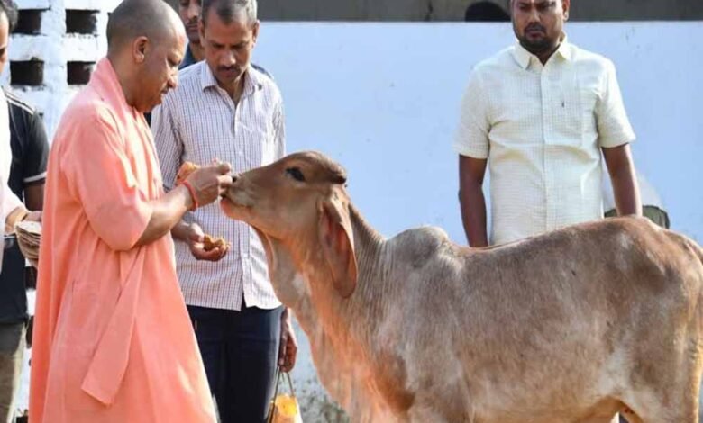 सीएम योगी का गोवर्धन पर्व पर अनोखा अंदाज़, खुद खिलाई गायों को गुड़-रोटी