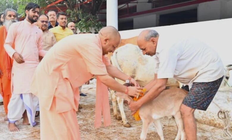 गोरखनाथ मंदिर की गोशाला में मुख्यमंत्री ने की गोवर्धन पूजा