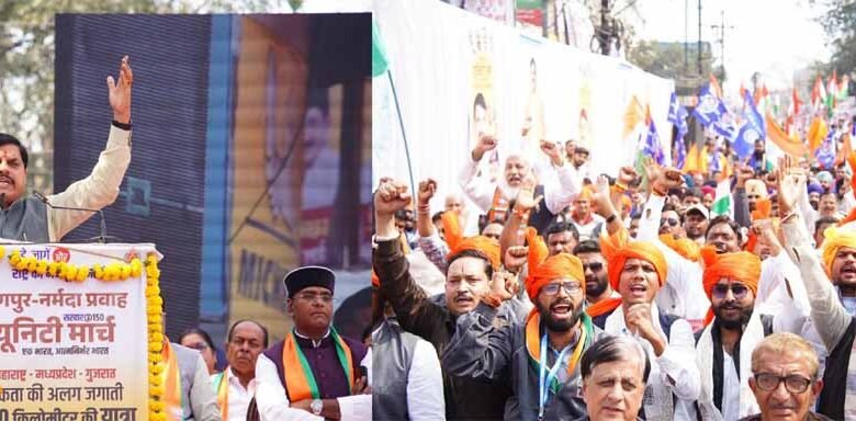 नर्मदा प्रवाह यात्रा यूनिटी मार्च का हुआ भव्य स्वागत