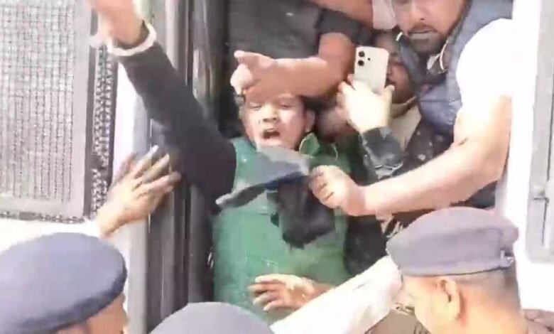 BJP दफ्तर निर्माण के खिलाफ सड़क पर उतरे कांग्रेसी, पुलिस ने किया गिरफ्तार