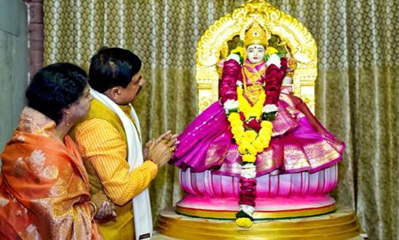 मुख्यमंत्री ने खंडवा में राजराजेश्वरी मंदिर में की पूजा अर्चना