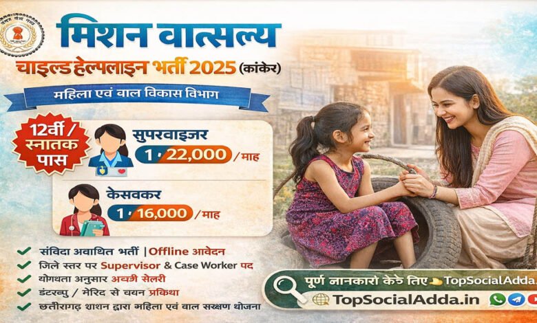 मिशन वात्सल्य में संविदा भर्तियां, जगदलपुर में इच्छुक उम्मीदवार 20 जनवरी तक भेजें आवेदन