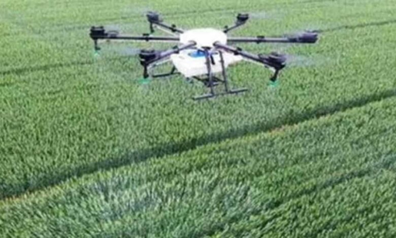 240 रुपये में एक एकड़ में ड्रोन से फसलों पर छिड़काव