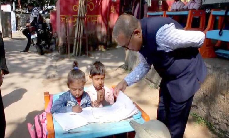 स्कूल के बरामदे में बैठकर डीसी ने बच्चों की कॉपियां देखीं