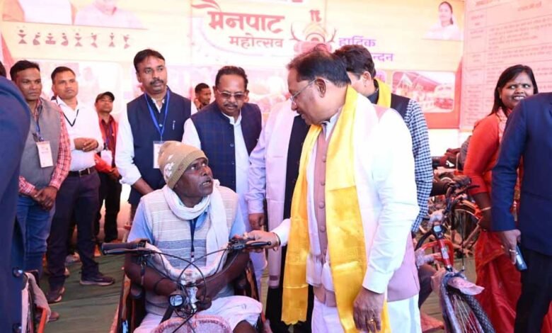 मुख्यमंत्री साय ने विभिन्न विभागों द्वारा लगाए गए स्टालों का अवलोकन किया तथा शासन की विभिन्न जनकल्याणकारी योजनाओं से पात्र हितग्राहियों को हितग्राहीमूलक सामग्रियों का वितरण किया गया