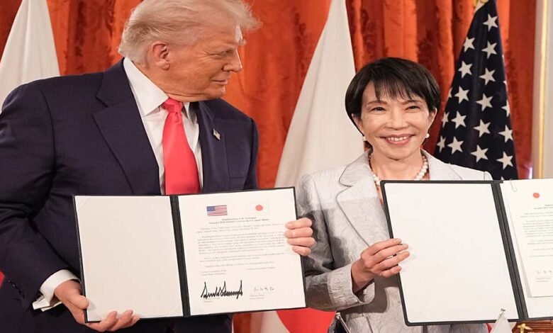 अमेरिका और जापान (US-Japan Trade Deal) में बात बन गई है और राष्ट्रपति डोनाल्ड ट्रंप (Donald Trump) ने दोनों देशों के बीच व्यापार समझौते को लेकर बड़ा ऐलान किया है. उन्होंने कहा कि जापान के साथ हमारी बहुत बड़ी ट्रेड डील अभी शुरू हुई है और Japan अब आधिकारिक और वित्तीय रूप से अमेरिका में निवेश करने के अपने 550 अरब डॉलर के कमिटमेंट के तहत पहले सेट के साथ आगे बढ़ रहा है.