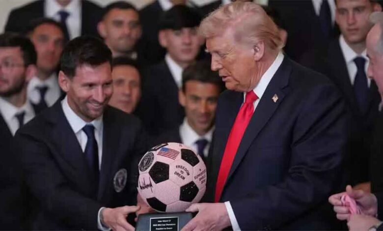 लियोनेल मेस्सी ने डोनाल्ड ट्रंप को रत्नजड़ित गुलाबी फुटबॉल भेंट की