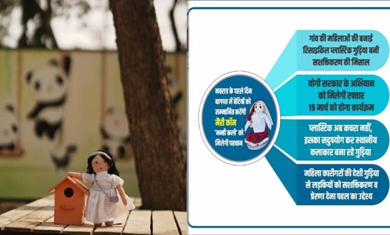 मुख्यमंत्री योगी आदित्य नाथ की मंशा के अनुरूप नवरात्र के पहले दिन बागपत में बेटियों के सम्मान और सशक्तीकरण का एक अनूठा उदाहरण देखने को मिलेगा। छह बार की बॉक्सिंग विश्व चैंपियन मैरीकॉम ‘नन्ही कली’ कार्यक्रम में शामिल होकर बेटियों को सम्मानित करेंगी। गांव की महिलाओं द्वारा रिसाइकिल प्लास्टिक से तैयार की गई गुड़िया ‘नन्ही कली’ इस पहल का केंद्र है। इसके जरिए पर्यावरण संरक्षण, महिला आत्मनिर्भरता और ‘बेटी बचाओ, बेटी पढ़ाओ’ जैसे योगी सरकार के अभियानों को नई मजबूती मिलेगी।