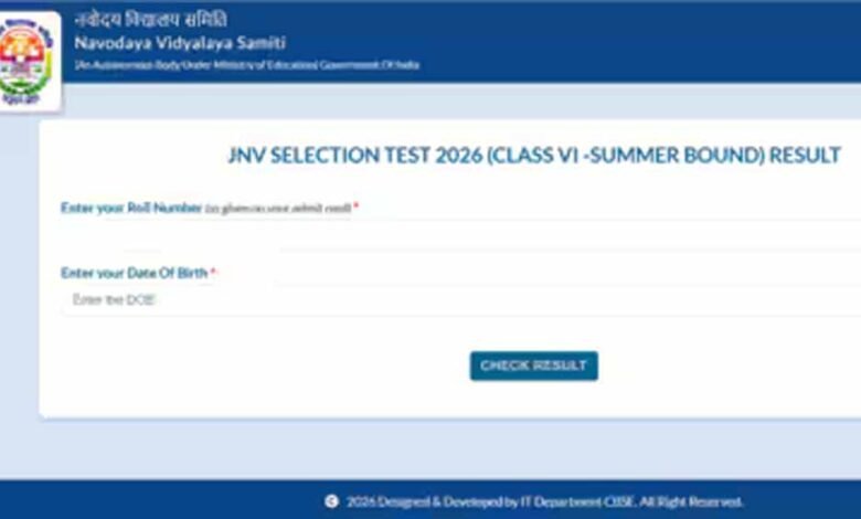 नवोदय विद्यालय समिति (NVS) ने क्लास 6 एडमिशन टेस्ट का रिजल्ट जारी कर दिया है। जवाहर नवोदय विद्यालय (जेएनवी) क्लास 6 में एडमिशन के लिए फेज-I की जवाहर नवोदय विद्यालय चयन परीक्षा (JNVST) दिसंबर 2025 में आयोजित की गई थी। लाखों विद्यार्थियों ने ने इस एडमिशन टेस्ट के लिए आवेदन किया था। रिजल्ट जारी होने के बाद अब मेरिट लिस्ट के आधार पर डॉक्यूमेंट वेरिफिकेशन (डीवी) और एडमिशन की प्रक्रिया शुरू होगी। अलॉट हुए स्कूल जाकर जरूरी डॉक्यूमेंट्स दिखाने होंगे। जवाहर नवोदय विद्यालय में एडमिशन के लिए कोई फीस नहीं ली जाती।