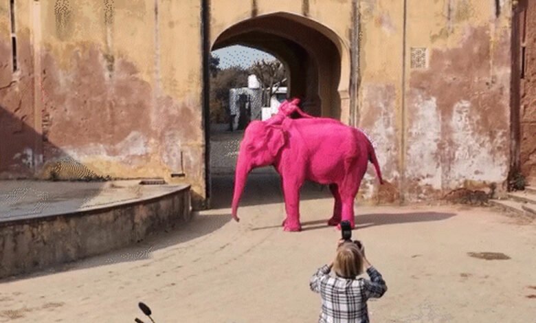 राजस्थान की राजधानी जयपुर (Pink City) से एक हैरान करने वाला मामला सामने आया है। यहां एक रूसी फोटोग्राफर जूलिया बुरुलेवा ने अपनी आर्ट सीरीज के चक्कर में एक हाथी को पूरे शरीर पर चमकदार गुलाबी रंग से पेंट कर दिया। हवामहल के सामने हुए इस फोटोशूट का वीडियो जैसे ही वायरल हुआ, जयपुर की सड़कों से लेकर सोशल मीडिया तक हंगामा खड़ा हो गया है।