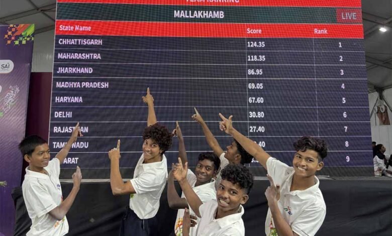 मल्लखंभ प्रतियोगिता के प्रथम दिन छत्तीसगढ़ की पुरूष टीम 124.35 अंक के साथ रही विजेता