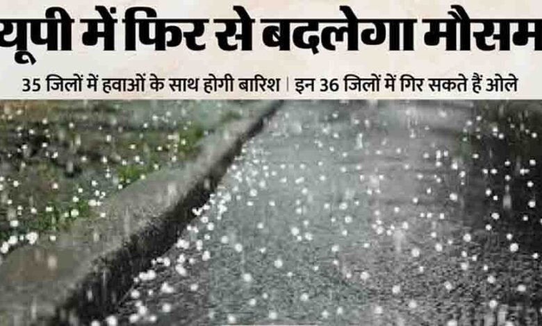 यूपी में मौसम एक बार फिर से बदलने जा रहा है। विक्षोभ की वजह से प्रदेश के कई जिलों में आज बारिश हो सकती है। कुछ जिलों में ओले भी गिर सकते हैं।