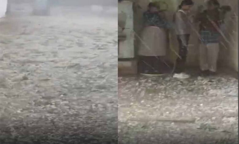 हालात कुछ ऐसे हो गए कि शहर के मुरार, आनंद नगर, बहोड़ापुर, विनय नगर समेत सिटी सेंटर इलाकों में इतनी अधिक ओलावृष्टि हुई कि वहां सफेद चादर पसर गई. कश्मीर जैसा मंजर दिखाई देने लगा. पद्मा राजे कन्या हायर सेकेंडरी स्कूल का दृश्य देखें:-