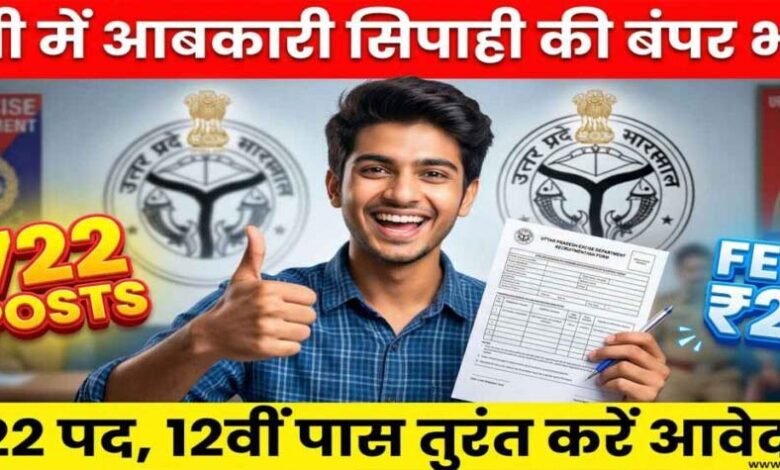 यूपी में आबकारी कांस्टेबल के 722 पदों पर आवेदन शुरू, 12वीं पास युवाओं के लिए सुनहरा अवसर