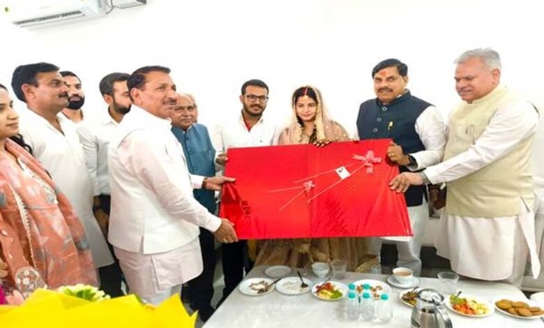 मुख्यमंत्री डॉ. यादव ने कृषि मंत्री के निवास पर पहुंचकर वर-वधू को दिया आशीर्वाद